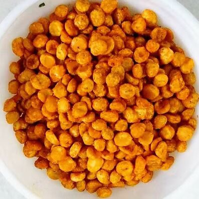 Bitter gourd fried deeply with Edible Oil, added with Salt, Spices and Condiments.