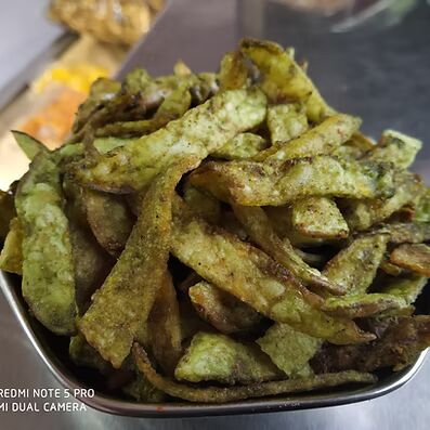 Potatoes fried deeply with Sunflower Oil, added with Pudina, GInger, Garlic, Salt, Spices and Condiments.