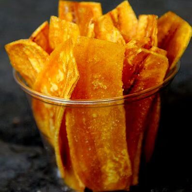 Banana fried deeply with Sunflower Oil, added with Chilly Powder, Salt and Spices.